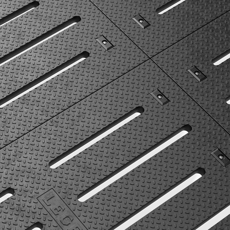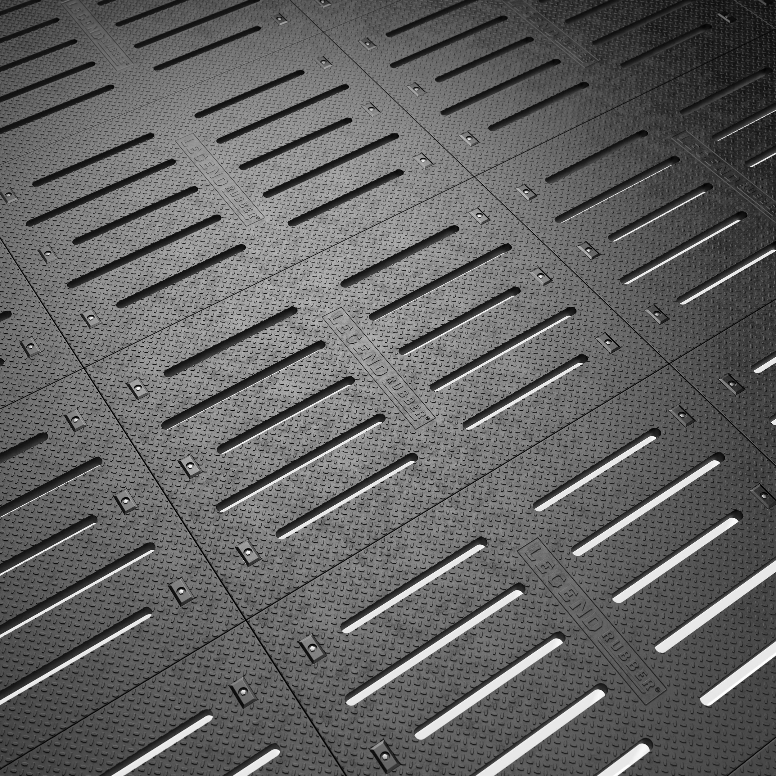 CNC water jets will custom cut these mats to exactly match your slat-floor.
