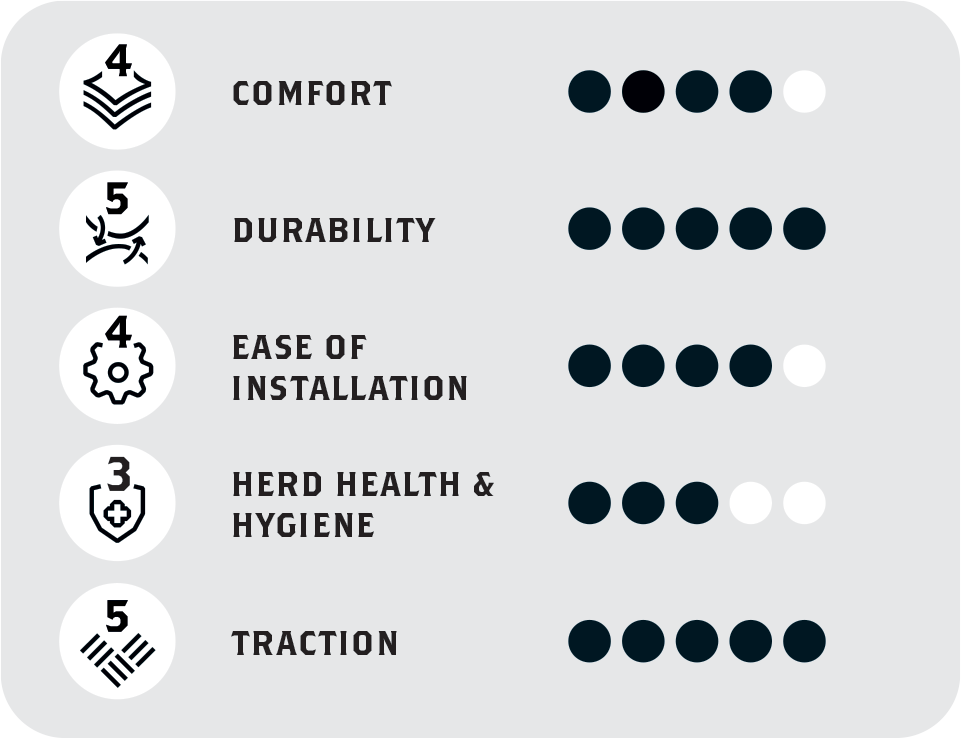 Our full range of flooring and bedding products for dairy farmers. The bedrock of healthy herds.